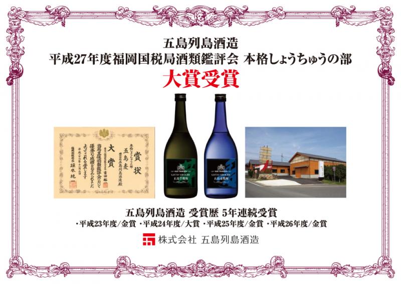長崎県五島列島で育てられた大麦を100%使用した本格麦焼酎です。