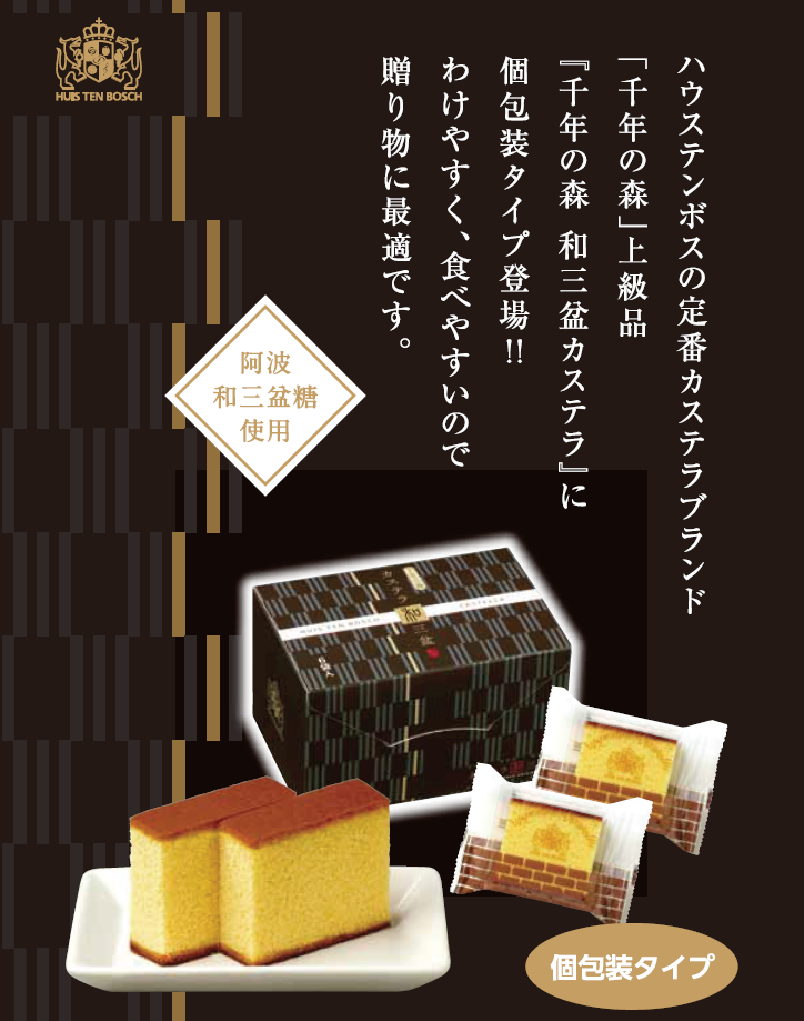 中でも上級品の『千年の森 和三盆カステラ』に個包装タイプが登場しました。