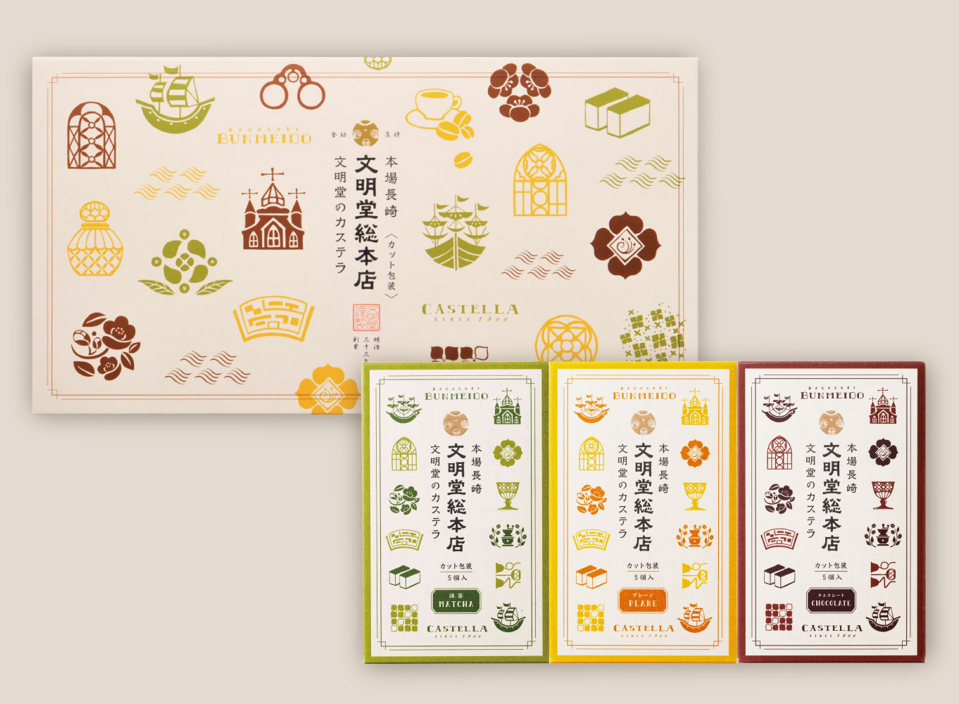 【文明堂総本店】カット包装カステラ 3箱入り(プレーン、抹茶、チョコレート)