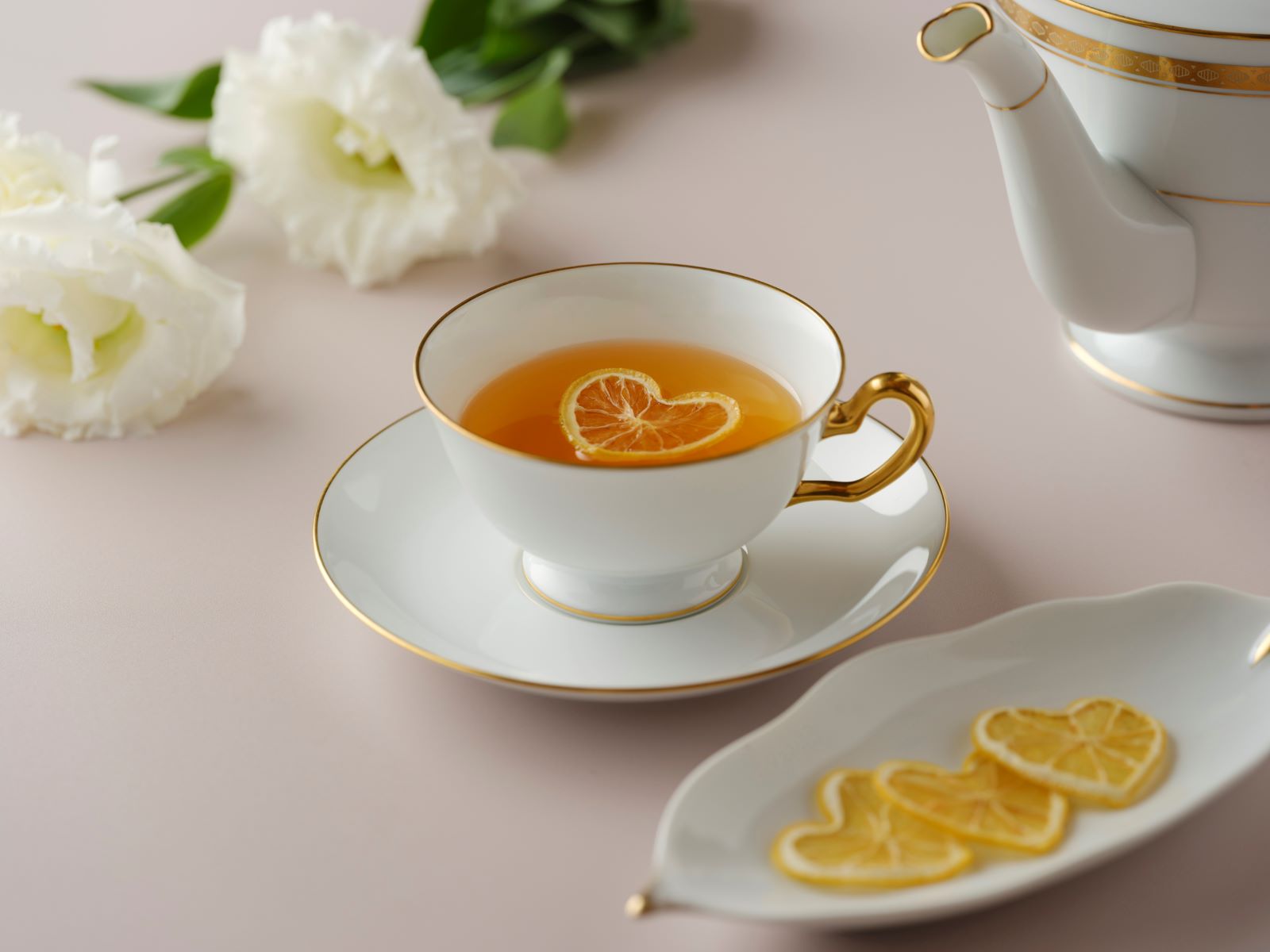 レモン特有の苦みが少なく、果実味豊かな「広島・瀬戸田のハート型レモン」を浮かべて飲む特別なレモンティー。
