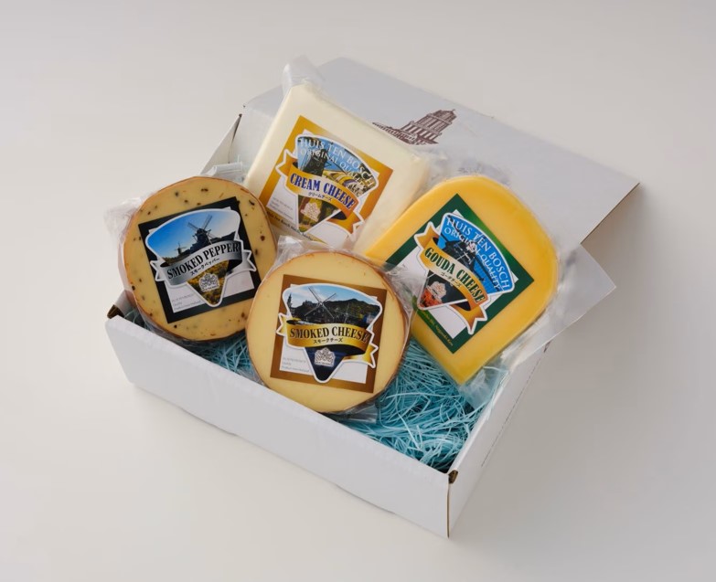 幅広いチーズの世界を楽しめる「ハウステンボスチーズセット」が登場しました! クリームチーズやゴーダチーズ、スモークチーズプレーン、そしてスモークチーズブラックペッパーまで、様々な味わいが揃っています。