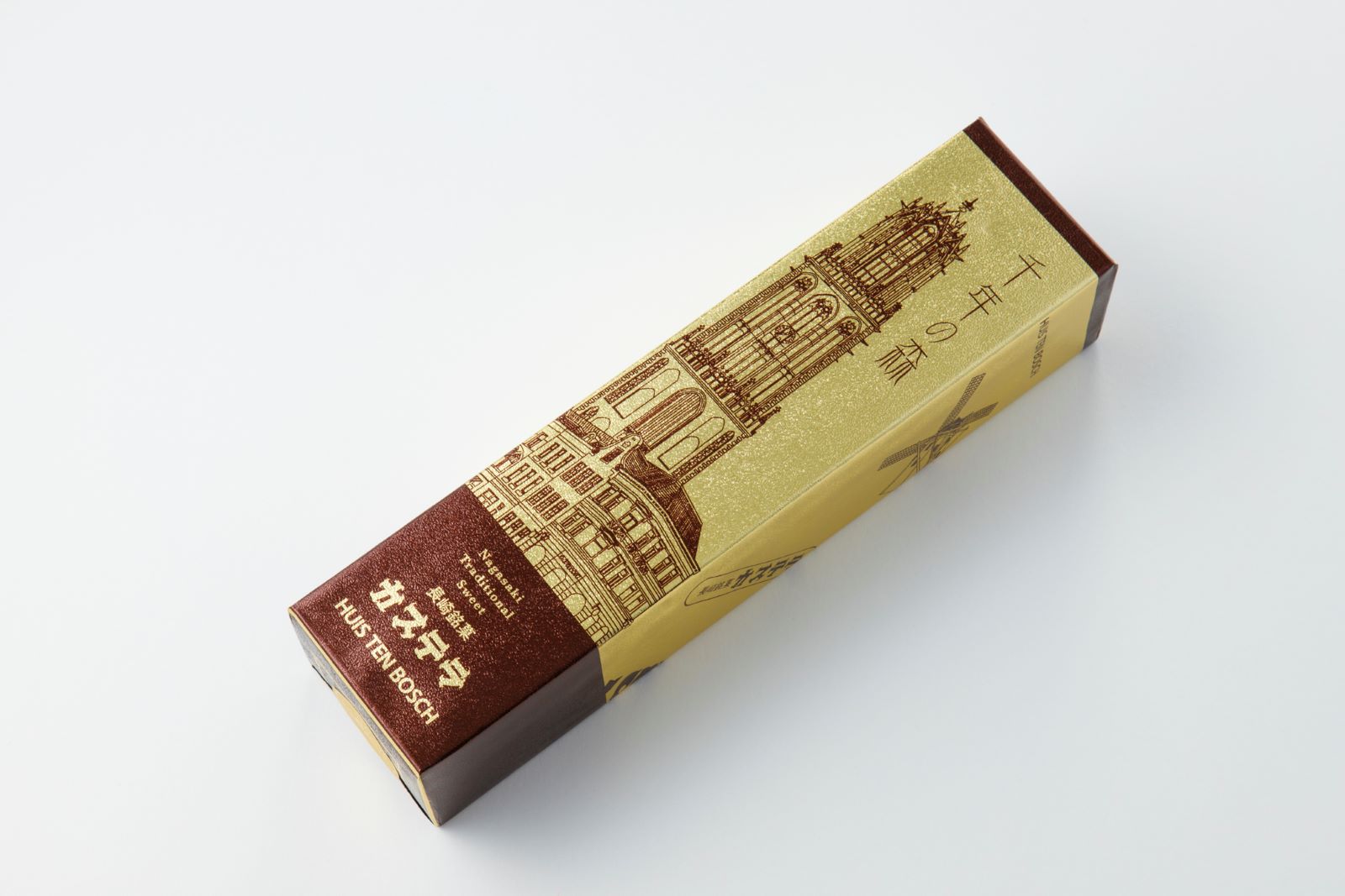 ゴールドのパッケージに、ハウステンボスのシンボル『ドムトールン』をデザインしました。