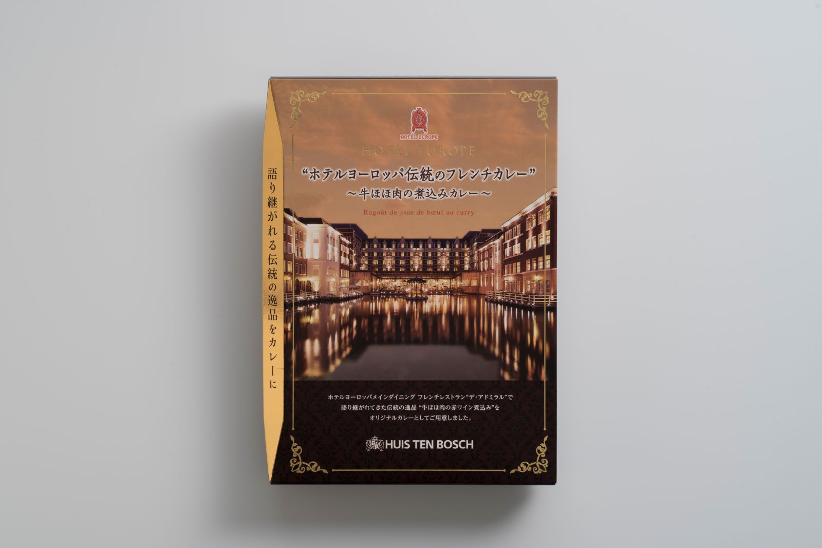 | 原材料 | 牛ほほ肉(オーストラリア産)、ソテー・ド・オニオン、チャツネ、トマトジュース(濃縮トマト還元)、甘未果実酒、小麦粉、牛脂豚脂混合油脂、野菜(玉ねぎ、人参)、砂糖、カレー粉、食塩、豚脂、肉エキス、乳糖、チキンブイヨン、でん粉、りんごペースト バター、フォン・ド・ボーソース、トマトケチャップ、アップルソース、ウスターソース、生クリーム、ミルクパウダー、加工油脂(なたね油、大豆油、食塩)、香辛料、赤ワイン/着色料(カラメル、カテロン)、調味料(アミノ酸等) 酸味料、乳化剤、香料、香辛料抽出物、(一部に乳成分・小麦・大豆・バナナ・鶏肉・リンゴ・牛肉・豚肉を含む) |