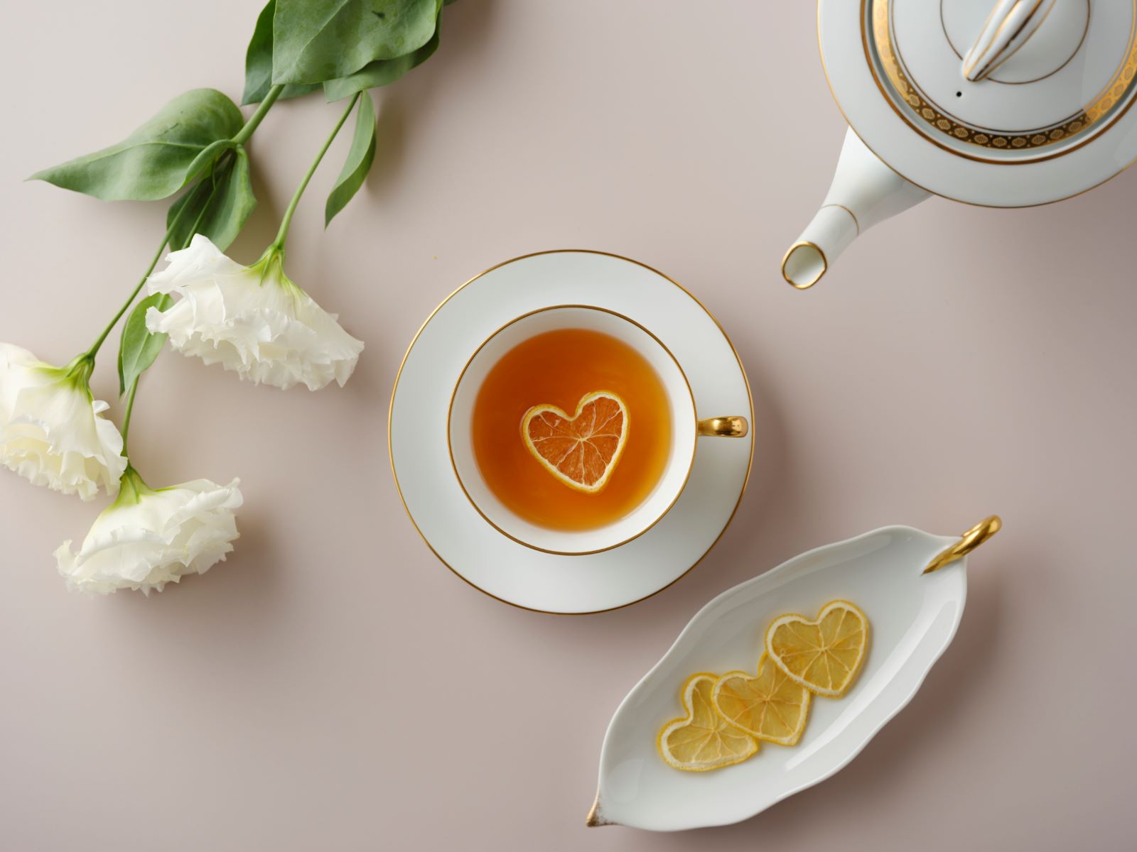 レモン特有の苦みが少なく、果実味豊かな「広島・瀬戸田のハート型レモン」を浮かべて飲む特別なレモンティー。