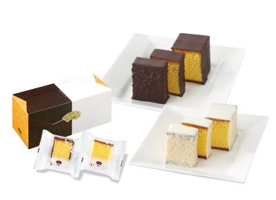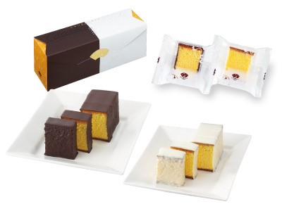 しっとりと焼き上げた五三焼カステラをビターチョコとホワイトミルクで包んだ革新のカステラスイーツです。