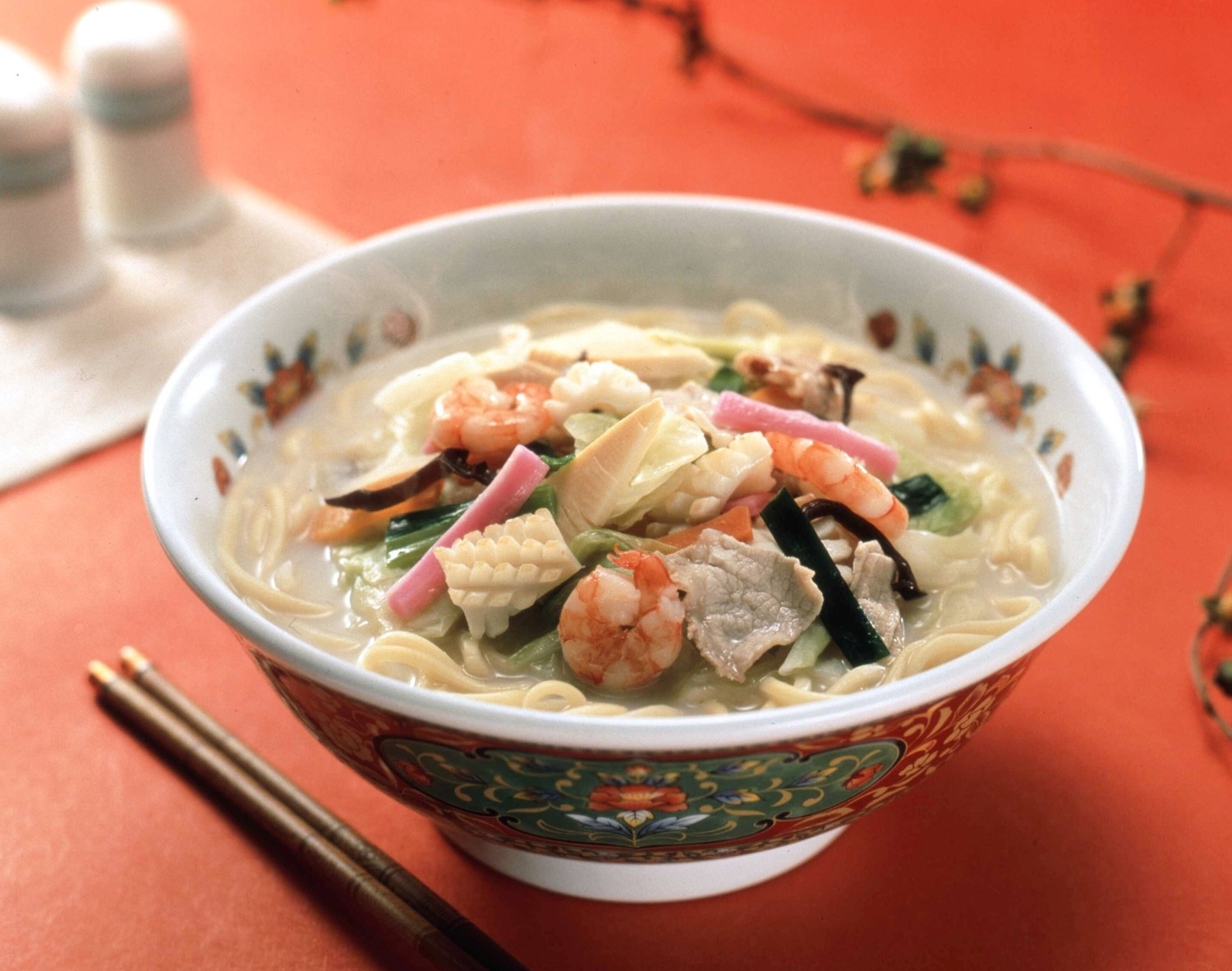 焼きあごの旨味を生かしながらあっさりと仕上げた特製スープと伝統の唐あく水を使ったもちもち麺のこだわりちゃんぽんです。